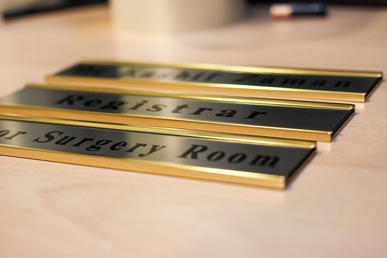 Office Door Sign Room Name plaques Brushed Brass / Stainless Steel Effect nameplate