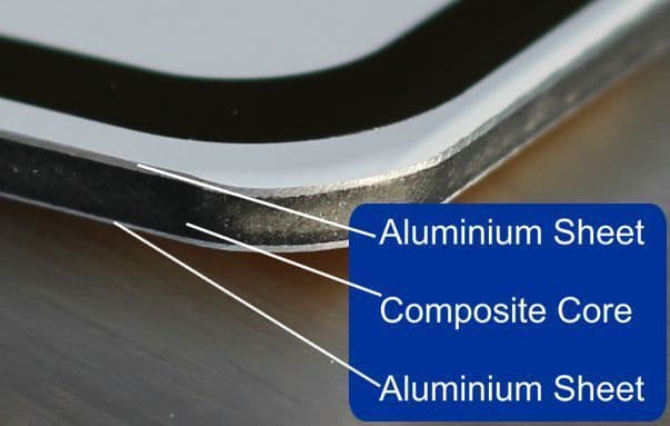 - On Aluminium faced composite plate suitable for use indoors or outside.