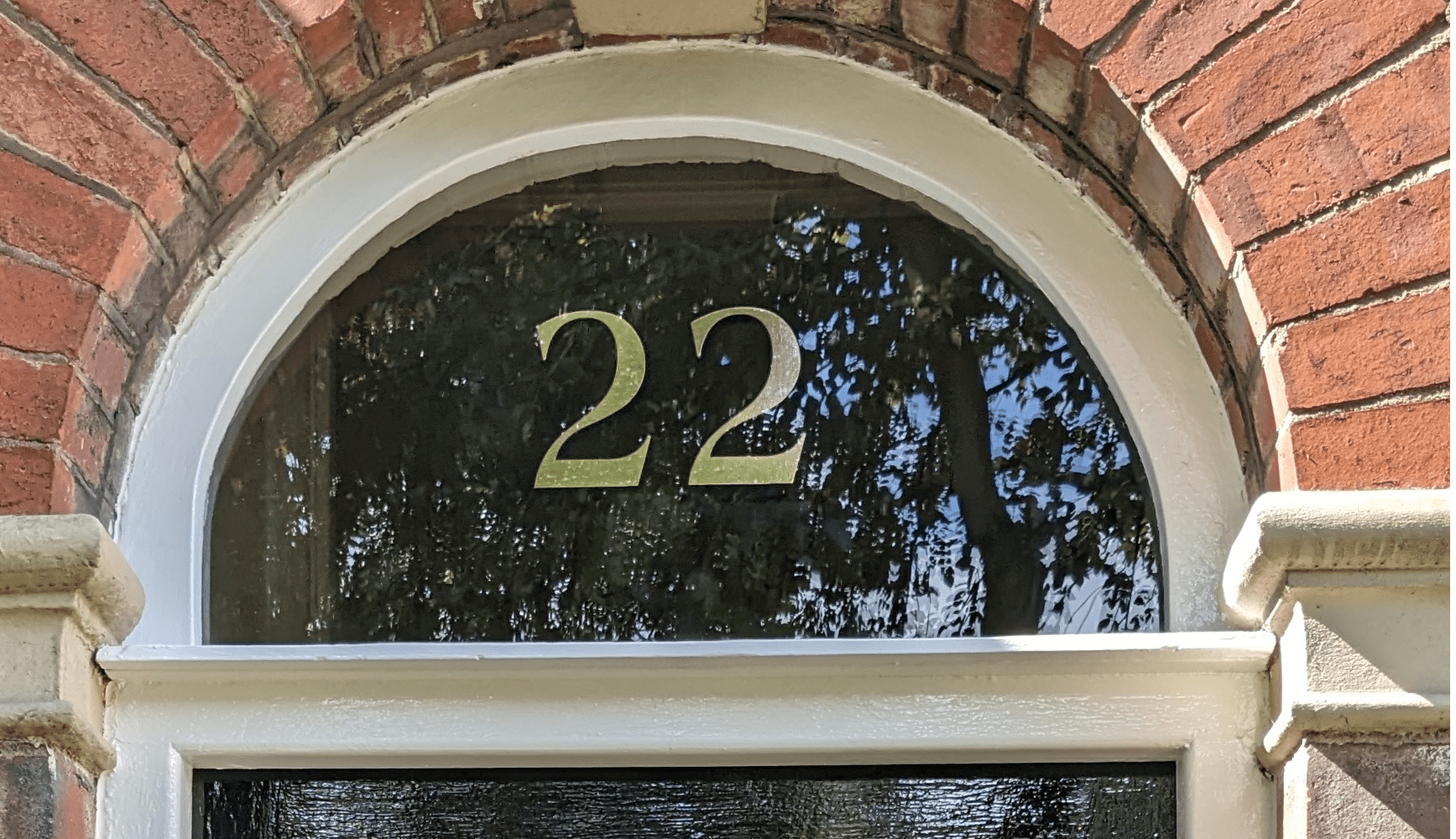 Reverse Cut Gold leaf style Fanlight Numbers for inside glass fitting